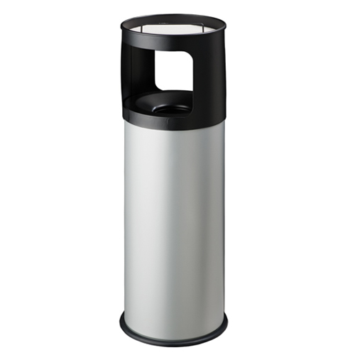 Metallo verniciato con polveri epossidiche; posacenere con griglia (sacco sabbia da 1 kg incluso); gettacarte con coperchio autoestinguente; base in gomma; possibile utilizzo in aree esterne coperte.