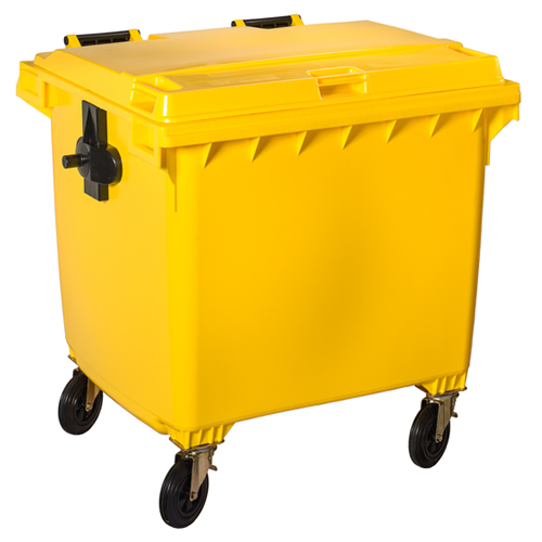 Polietilene ad alta densità (HDPE) con protezione anti UV; realizzato utilizzando il processo di stampaggio a iniezione; resistente a sbalzi termici, urti, corrosione e alle sostanze chimiche; ruote in gomma Ø 200 mm; ruote con anello in gomma per un utilizzo intensivo, 2 con freno; parti metalliche zincate resistenti alla corrosione; maniglie poste su 3 lati; conforme alla norma DIN 30740 / EN 840; svuotamento con sistema a pettine o DIN Standard.