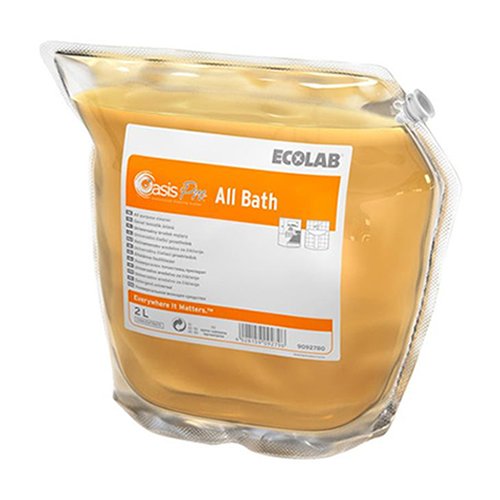 Oasis Pro All Bath è un detergente liquido concentrato NON acido, ideale per la pulizia e detersione dei bagni. Il detersivo ha una formulazione senza acidi adatta ad ogni tipo di materiale e superficie, comprese quelle delicate come il marmo.
