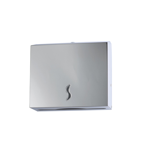 Il distributore di carta asciugamani ospita fino a 200 fogli di carta piegata a C e Z; dispone di una finestra per il controllo del livello della carta e una serratura antivandalo in metallo; kit d'installazione incluso (viteria in inox e tasselli).