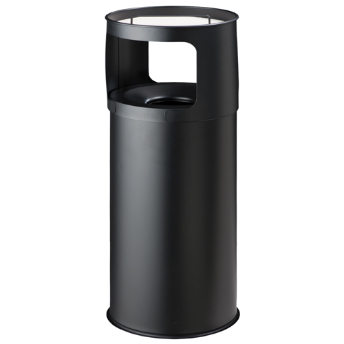 Metallo verniciato con polveri epossidiche; posacenere con griglia (sacco sabbia da 1 kg incluso); gettacarte con coperchio autoestinguente; base in gomma; possibile utilizzo in aree esterne coperte.