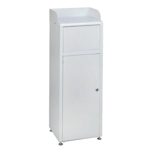 Metallo verniciato; sportello frontale basculante; guida ferma vassoi in opzione (LxPxH 405x268x115 mm); reggisacco interno in metallo galvanizzato; anta inferiore invertibile con chiusura a chiave triangolare; piedi regolabili (altezza max. 5 cm); kit quattro ruote Ø 40 mm in opzione (2 ruote con freno).