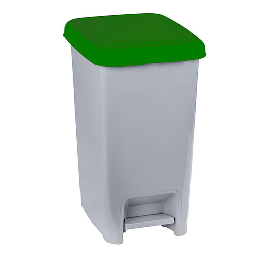 Polipropilene; sistema di apertura del coperchio in metallo; reggisacco interno in plastica; versione 60 L disponibile in vari colori per raccolta differenziata; venduta in conf. singola (montata) o multipla (da montare).