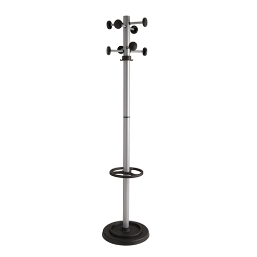Struttura in acciaio verniciato a polvere; base in polipropilene; con portaombrelli; 8 ganci in polipropilene.