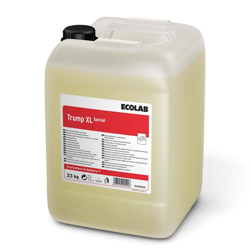 Trump XL Special è un detergente liquido alcalino per il lavaggio di meccanico di stoviglie in condizioni di acqua mediamente dura. Fa parte dell'innovativa gamma dei prodotti senza NTA, EDTA, fosfati e cloro di Ecolab.