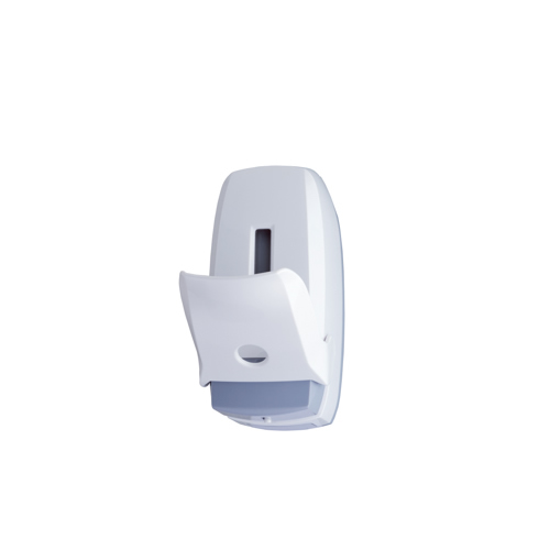 Distributore con serbatoio in plastica a riempimento da 0,5 lt per tutti i tipi di sapone, salvo a microgranuli; sistema di erogazione a gomito con pompa anti-gocciolamento; finestra per il controllo del livello del sapone; apertura cover con pulsante in plastica; kit d'installazione incluso (viteria e tasselli).