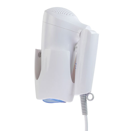 Involucro e supporto in ABS bianco; motore a magneti permanenti da 1.000 W max.; voltaggio: 220-240 V - Frequenza: 50-60 Hz; termostato di sicurezza sulla resistenza; accensione/spegnimento con pulsante a rilascio; 3 combinazioni velocità/calore dell’aria; manico pieghevole per ridurne l’ingombro; isolamento/grado protezione elettrica: Classe II.