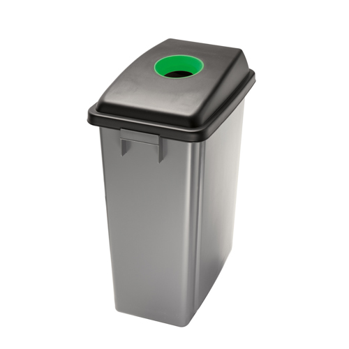 Coperchio con foro tondo verde; maniglie integrate laterali per agevolarne lo spostamento; design compatto per un facile collocamento; facile pulizia e manutenzione; soluzione ideale per uffici e per il settore della ristorazione collettiva.