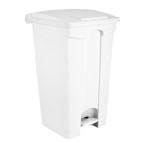 Polipropilene; sistema d'apertura del coperchio in plastica; coperchi disponibili in vari colori per incentivare la raccolta differenziata; maniglia di trasporto posteriore integrata; ampio pedale per utilizzo conforme al metodo HACCP.